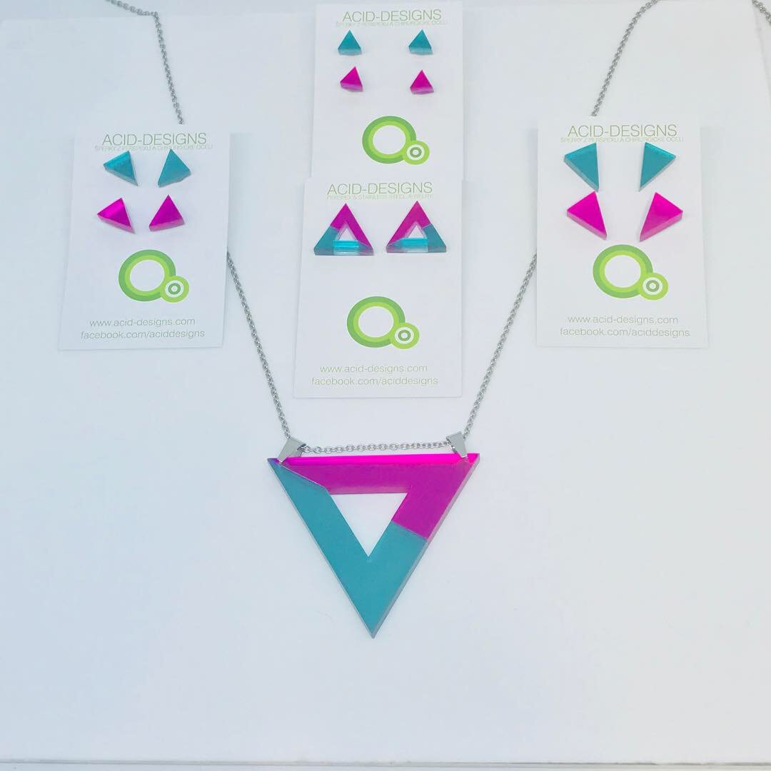 Náhrdelník Acamar je vytvořen z barevného dvojvrstvého perspexu a je na řetízku z chirurgické oceli dlouhém cca 88cm .