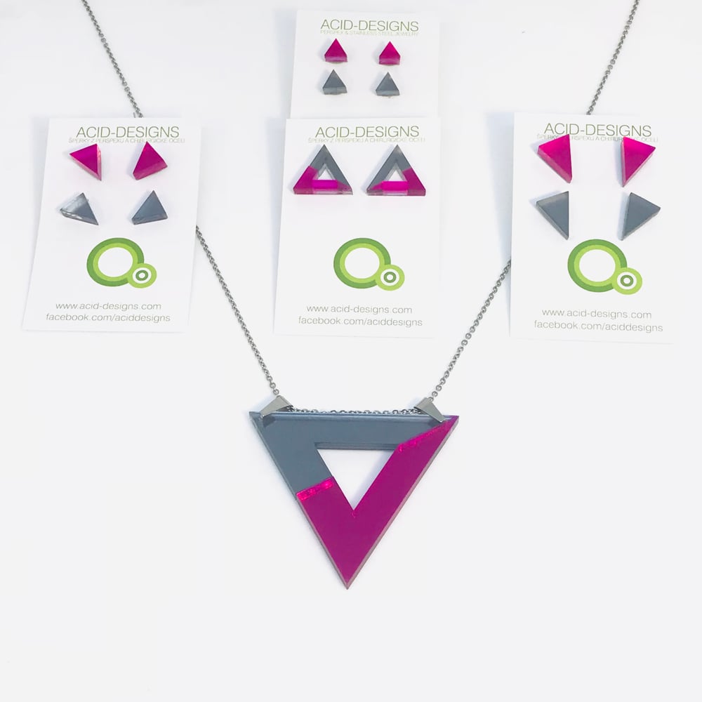 Náhrdelník Acamar je vytvořen z barevného dvojvrstvého perspexu a je na řetízku z chirurgické oceli dlouhém cca 88cm .