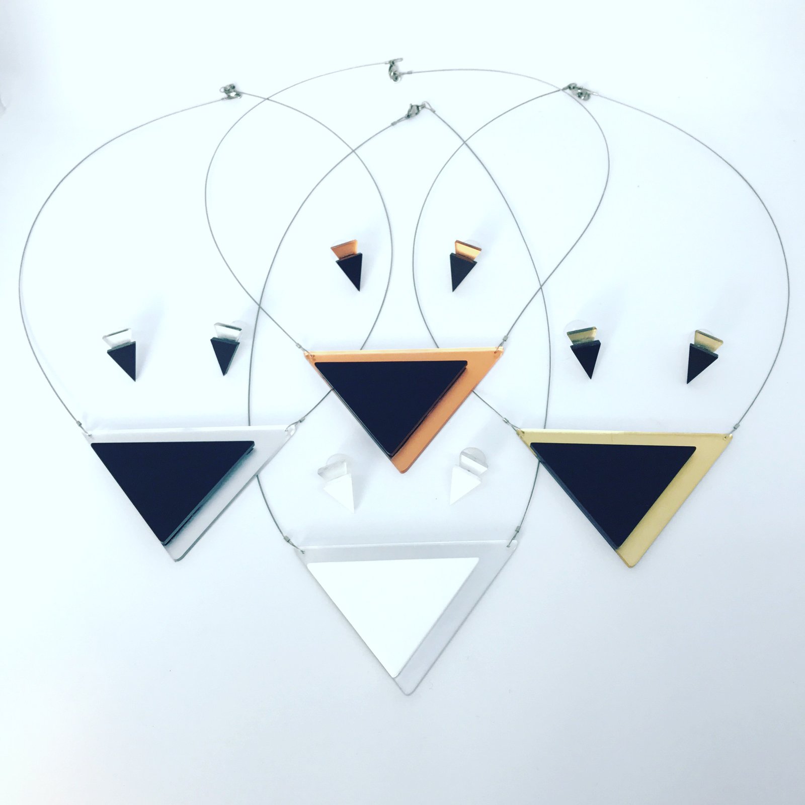 Vyroben z zrcadlového matného (ručně broušený povrch) perspexu v odstínech stříbrné, zlaté, mědené v kombinaci matným bílým nebo černým perspexem.
