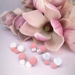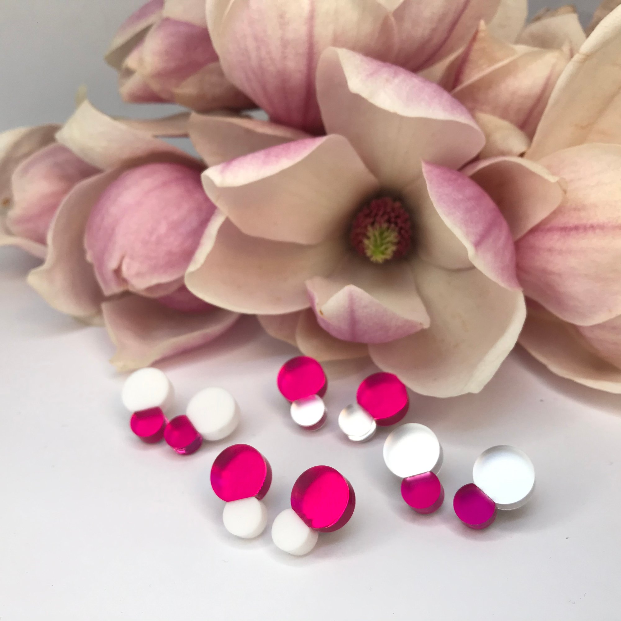 Oblíbené náušnice Bubbles v nových barevných kombinacích. Bílá a stříbrná ( matné zrcadlo) u těchto náušnic jsou novinkou. Jejich decentní spojení bílé a stříbrné si zamilujete, tak jako kombinaci s něžnou starorůžovou nebo v kombinaci s oblíbenou fuchsiovou.