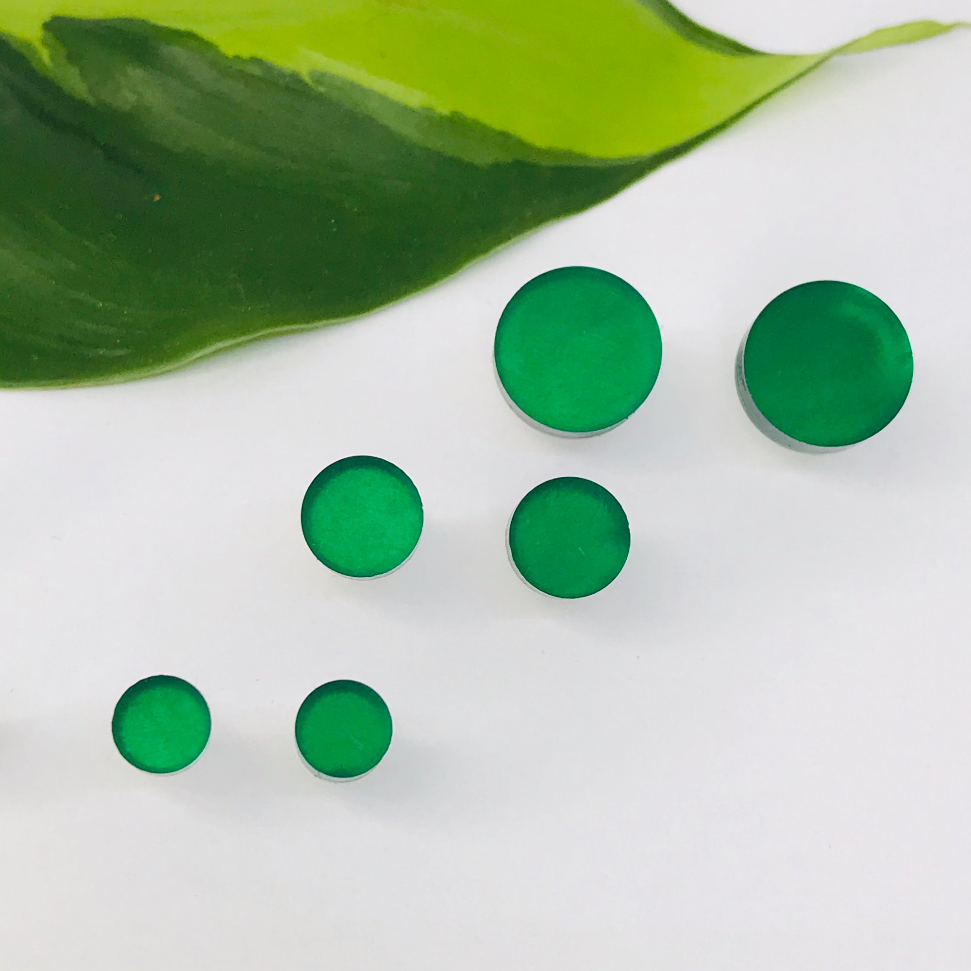 Náušnice Circle , Circle mini a Circle xs smaragdová zelená a limetková zelená