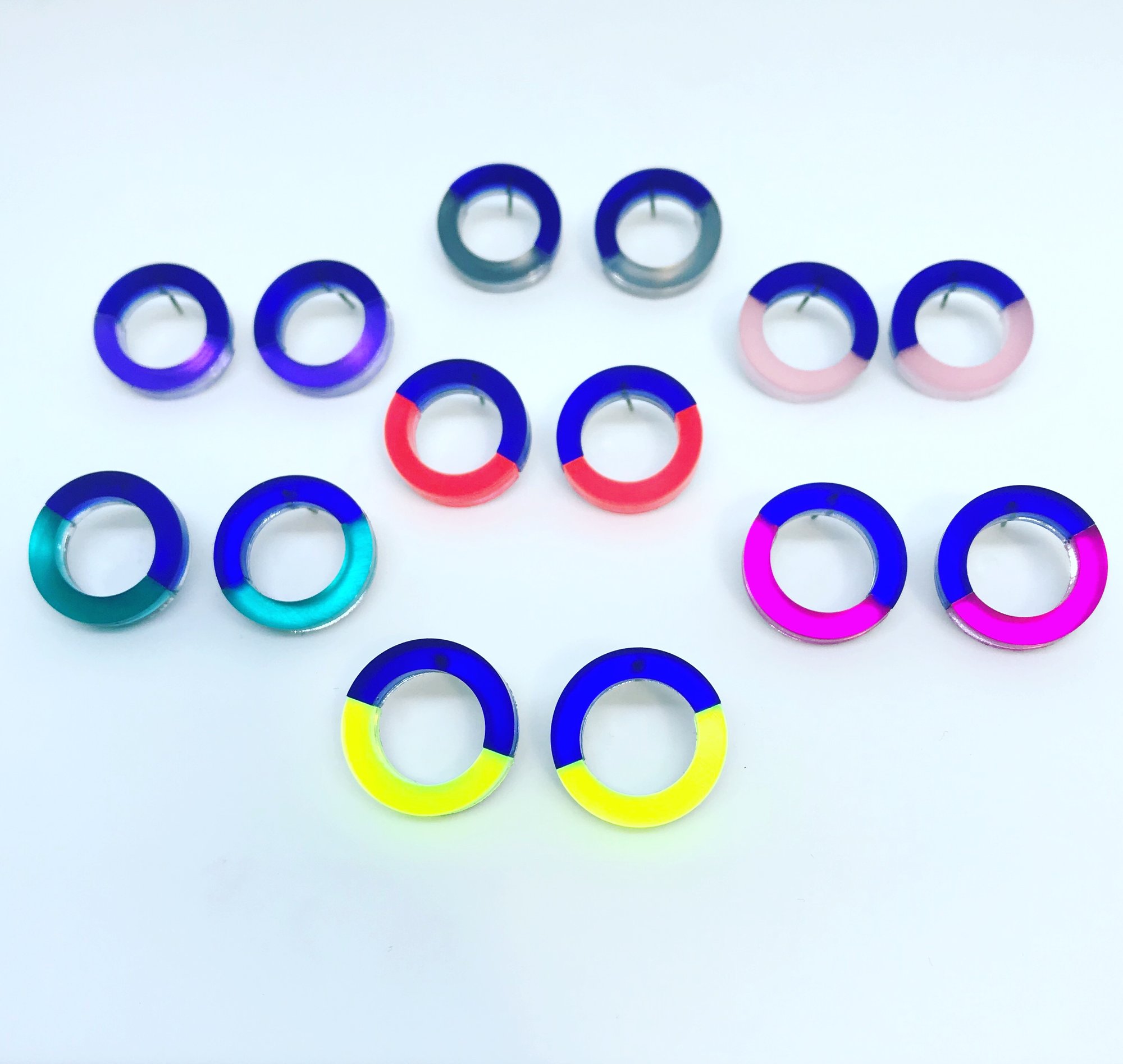 Náušnice Doublecircle Blue&Color jsou náušnice kruhového designu ve spojeni tmavě modré a 7 barev.