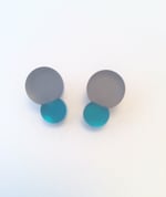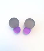 Náušnice ve tvaru dvou spojených bublin větší šedé a menší barevné.