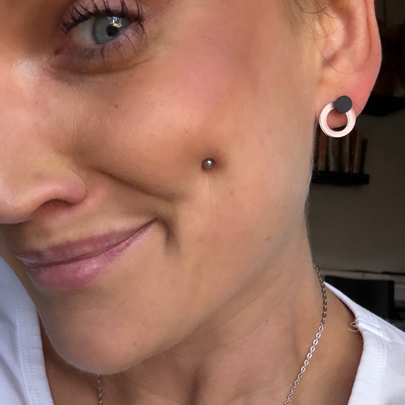 Náušnice LouLou z barevného zrcadlového perspexu mám v nových barvičkách.