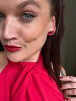 Puzetky jsou z hypoalergenní chirurgické oceli, náušnice z akrylátového skla Perspex.
