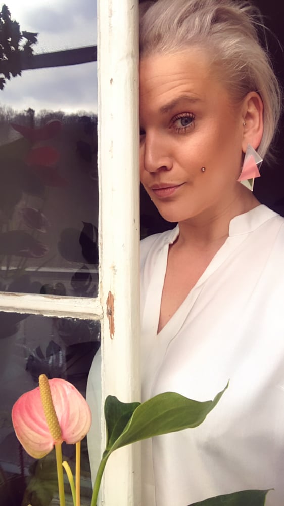 Pravá a levá náušnice jsou navrženy tak, aby Vám starorůžový trojúhelník opisoval křivky tváře.