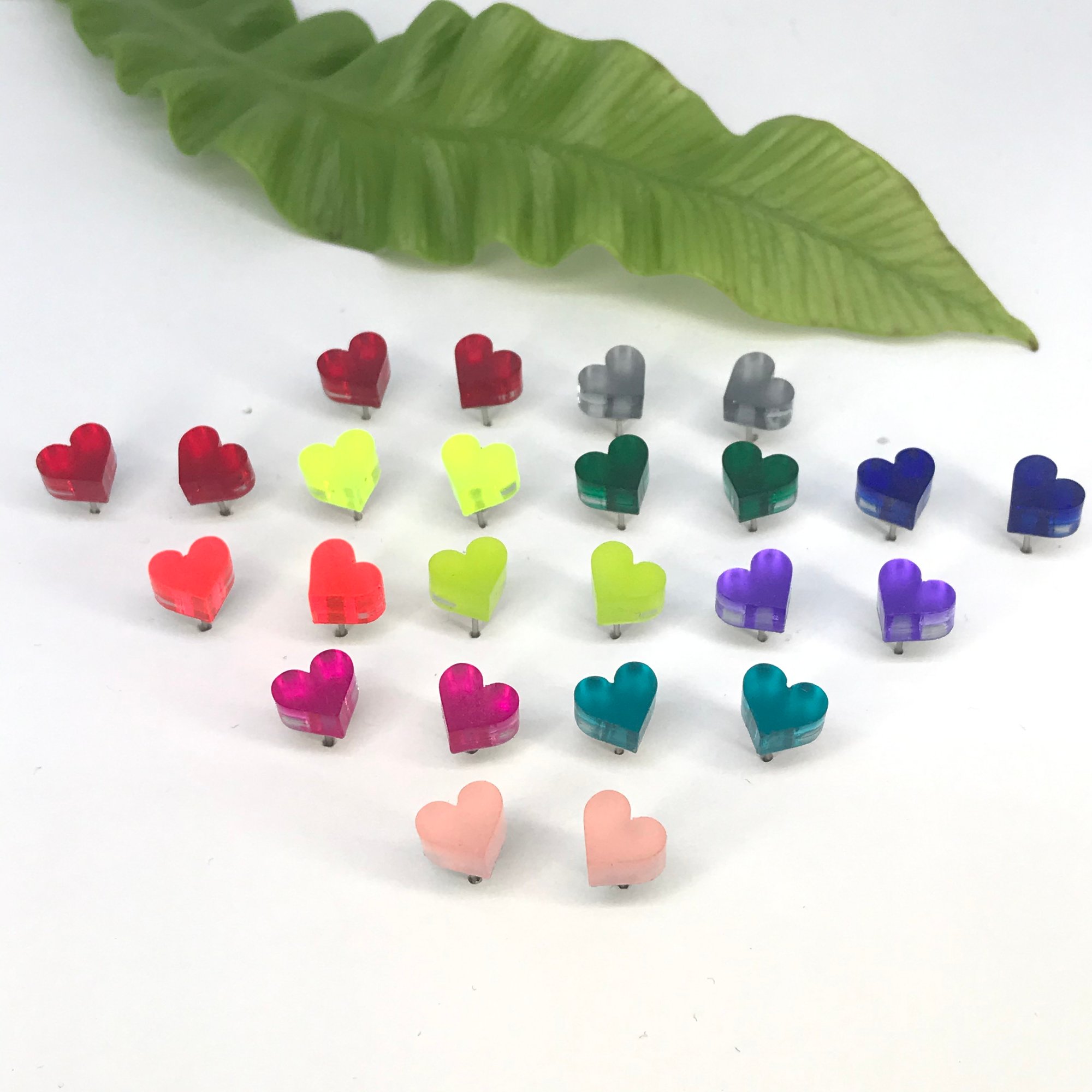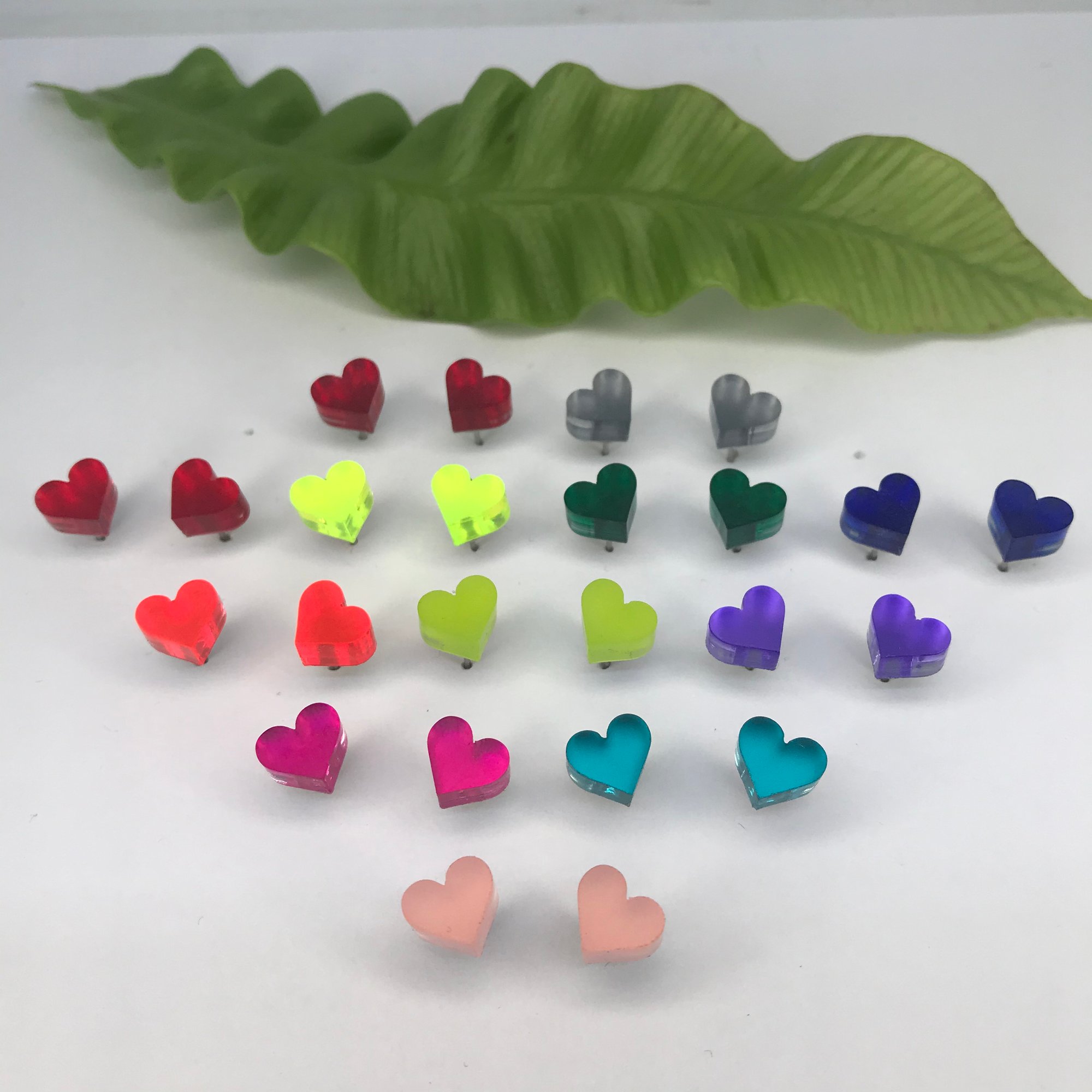 Náušnice Srdíčka jsou vyrobeny ze dvou vrstev - barevného perspexu a zrcadla z perspexu , barvy jsou tak výraznější a mají velmi působivé odlesky.