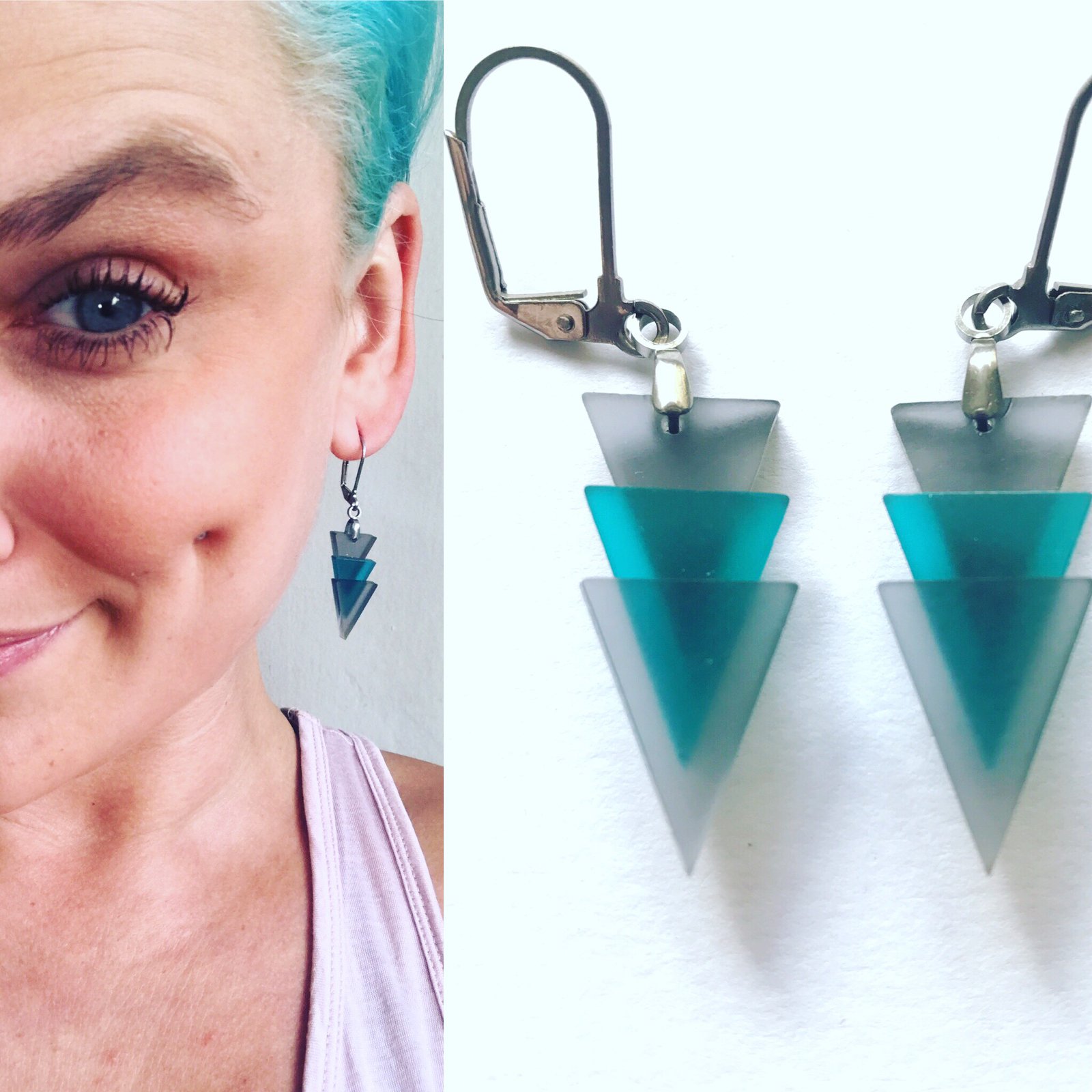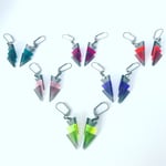 Visací náušnice jsou vyrobeny z perspexu s komponenty z chirurgické oceli.