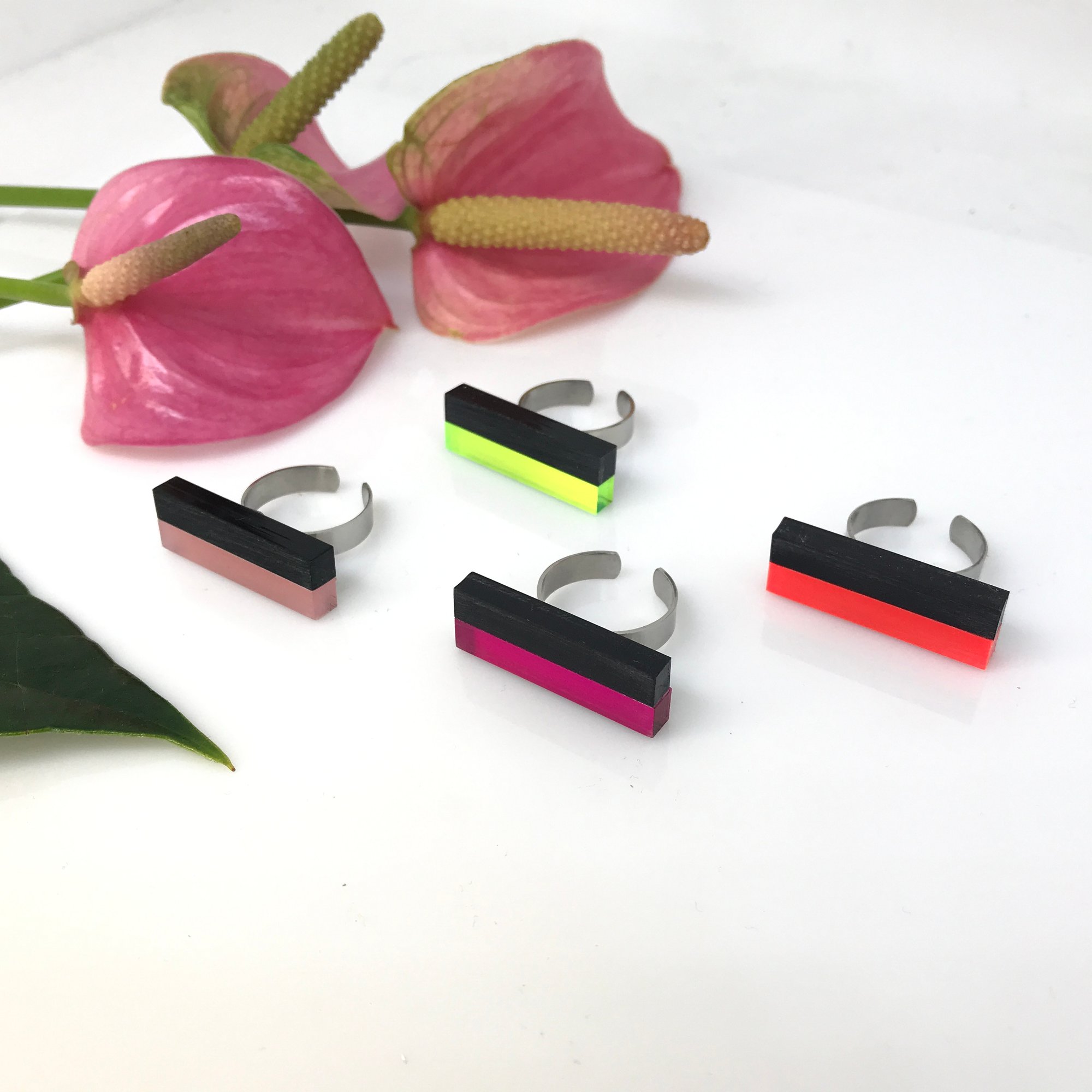 Rozměr perspexového prstýnku je 2,5x1cm.
