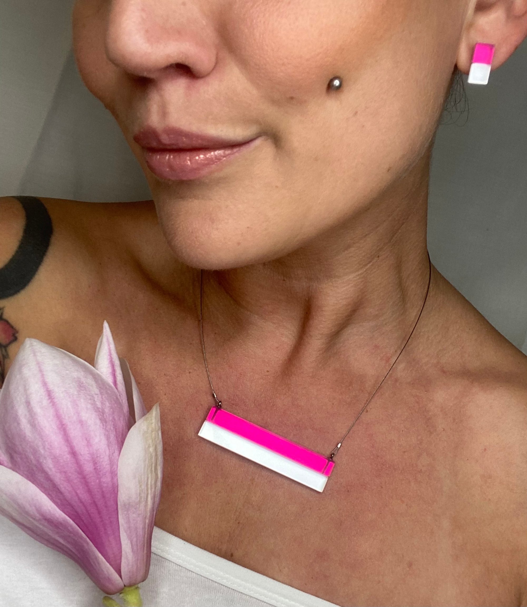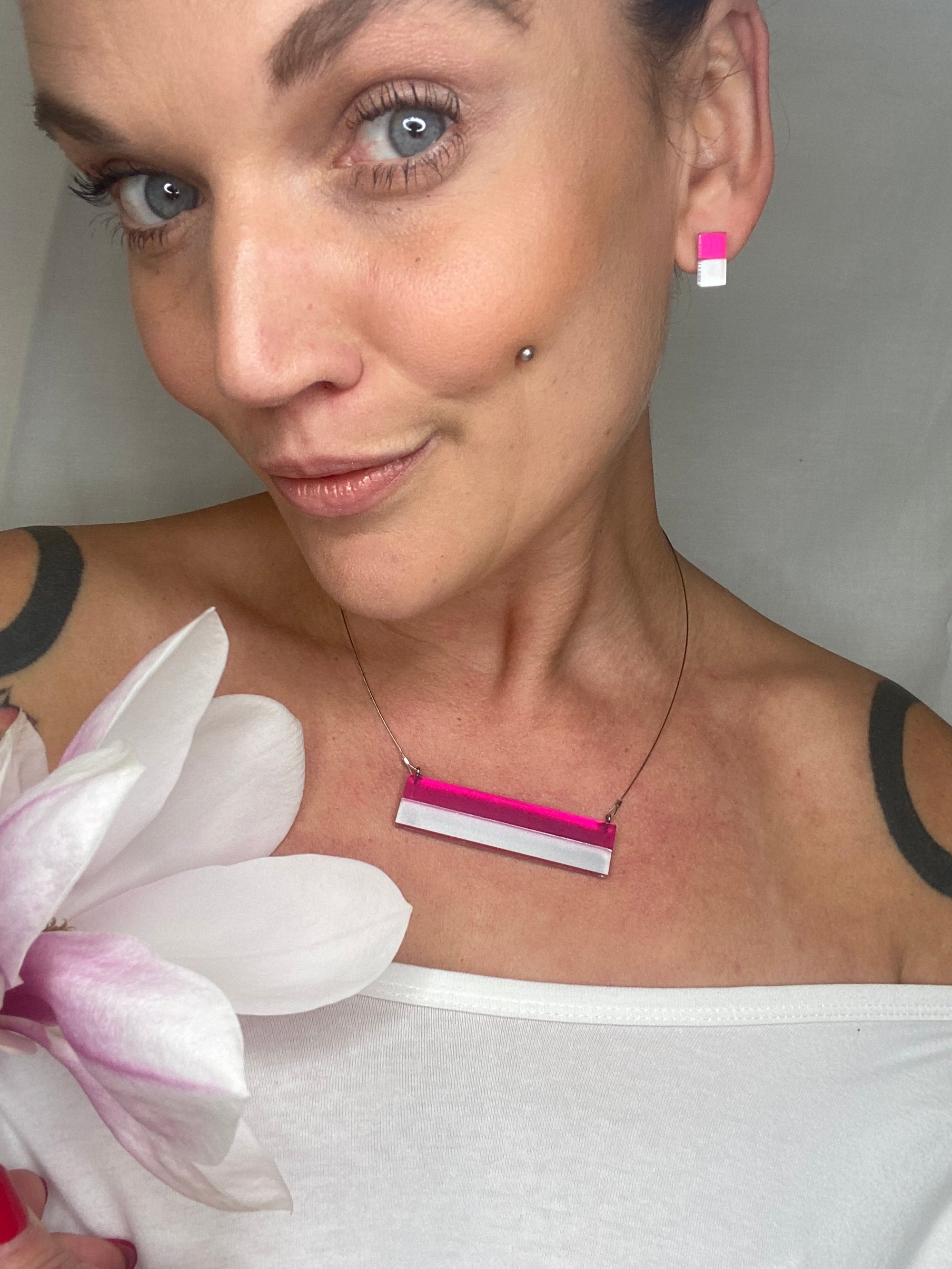 Set náušnic a náhrdelníku z akrylátového skla perspex a komponentů z chirurgické oceli.