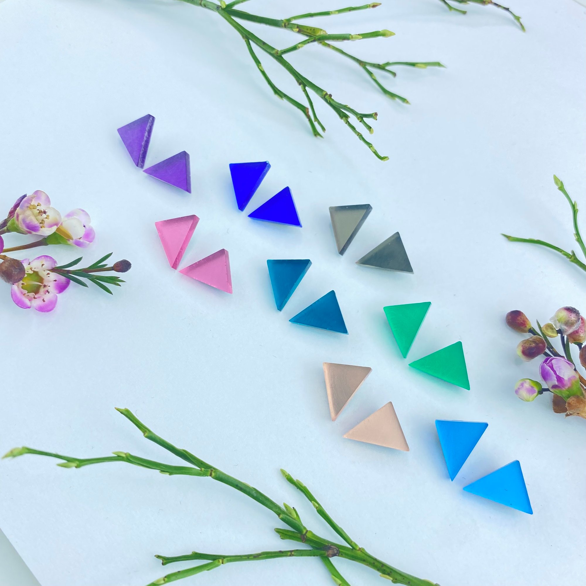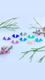 Jak zrychlit své ranní rituály? Mít po ruce vždy náušnice, které padnou ke každému outfitu. Náušničky Triangle m jsou právě proto naším bestsellerem. Triangle m z barevného zrcadlového perspexu máme v 10 nových barvách.